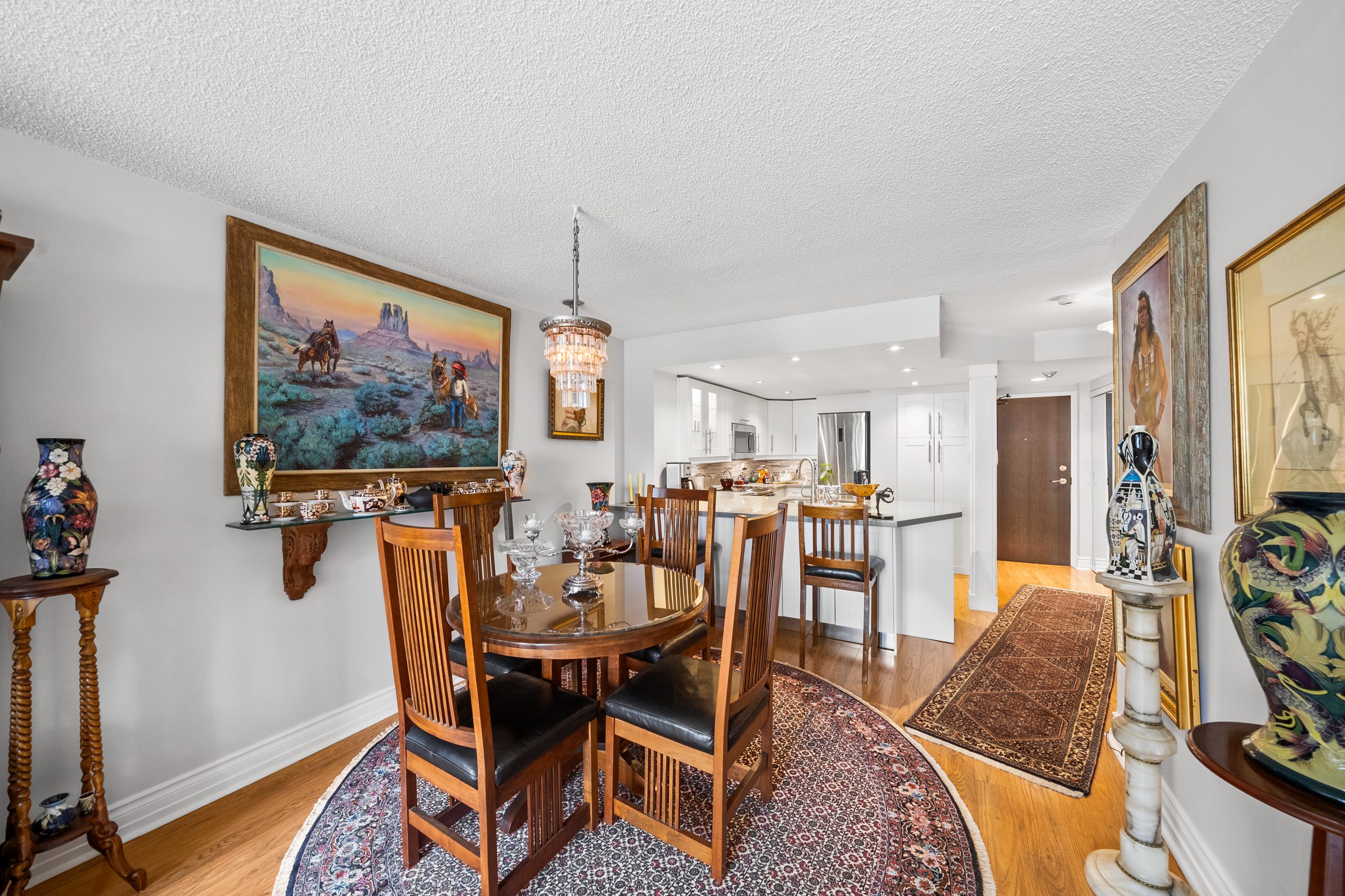 Two spacious bedrooms offer ample closet space, and a modern 4-piece bathroom adds a touch of luxury. With Ecobee smart thermostat, updated HVAC, stacked in-suite washer and dryer. Inclusive maintenance fees, owned parking, and a locker, this condo offers a low-maintenance, convenient lifestyle. Meticulously maintained and tastefully updated, this unit is truly move-in ready!