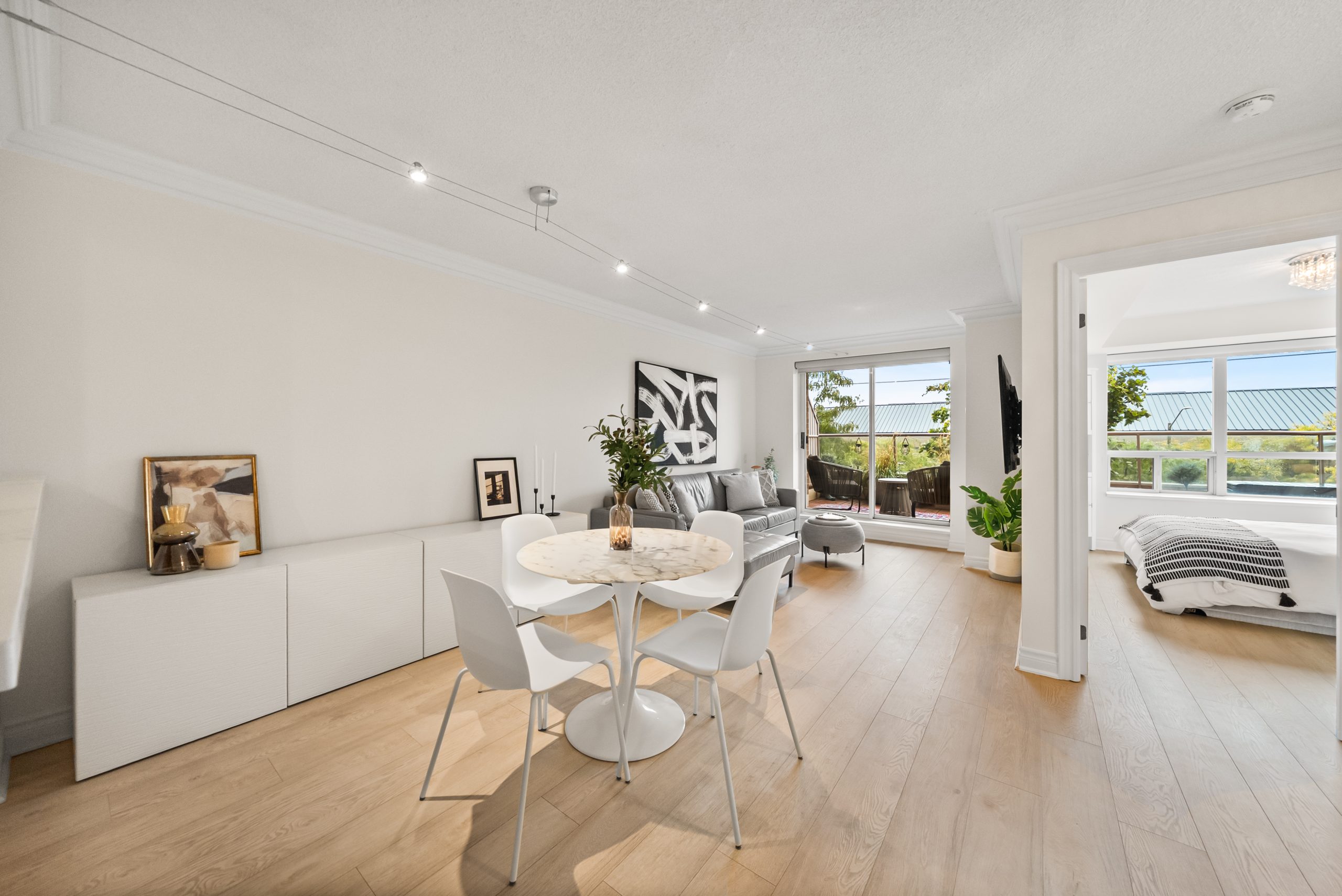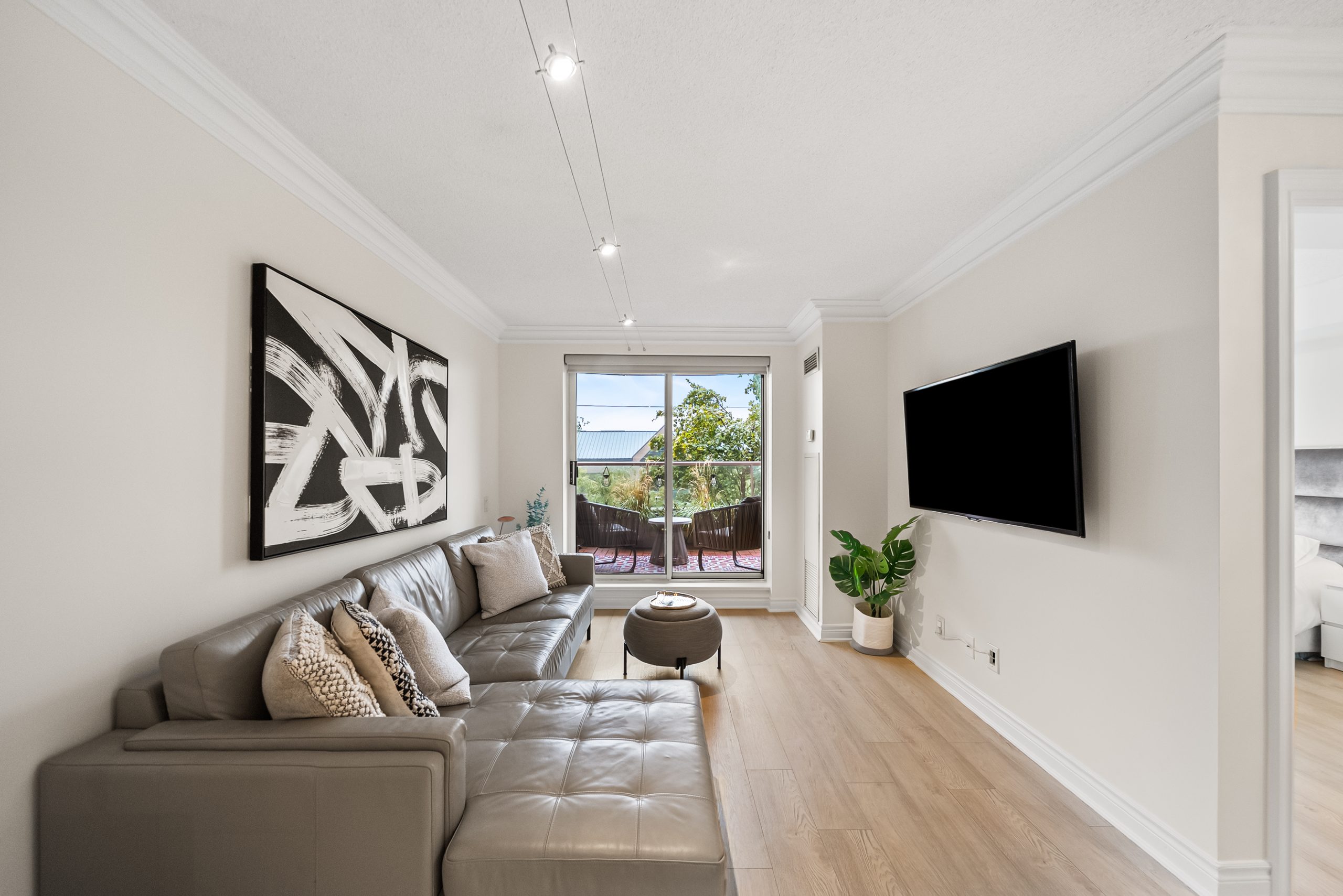 This bright and beautifully updated 1 bedroom plus den, with parking AND locker, is move-in ready, blending modern finishes with the space for everyday comfort. Just steps to Bayview and Sheppard, this spacious unit offers a functional open-concept layout, crown moulding, and updated laminate wood floor throughout. The contemporary kitchen is a showstopper, featuring upgraded stainless-steel appliances, quartz countertops, tile backsplash, and a breakfast bar. You’ll appreciate the abundance of counter and storage space, designed with both form and function in mind. The expansive living and dining area is flooded with natural light, framed by tasteful crown moulding and offering a seamless walk-out to a generous private terrace, perfect for morning coffee or al fresco dining.