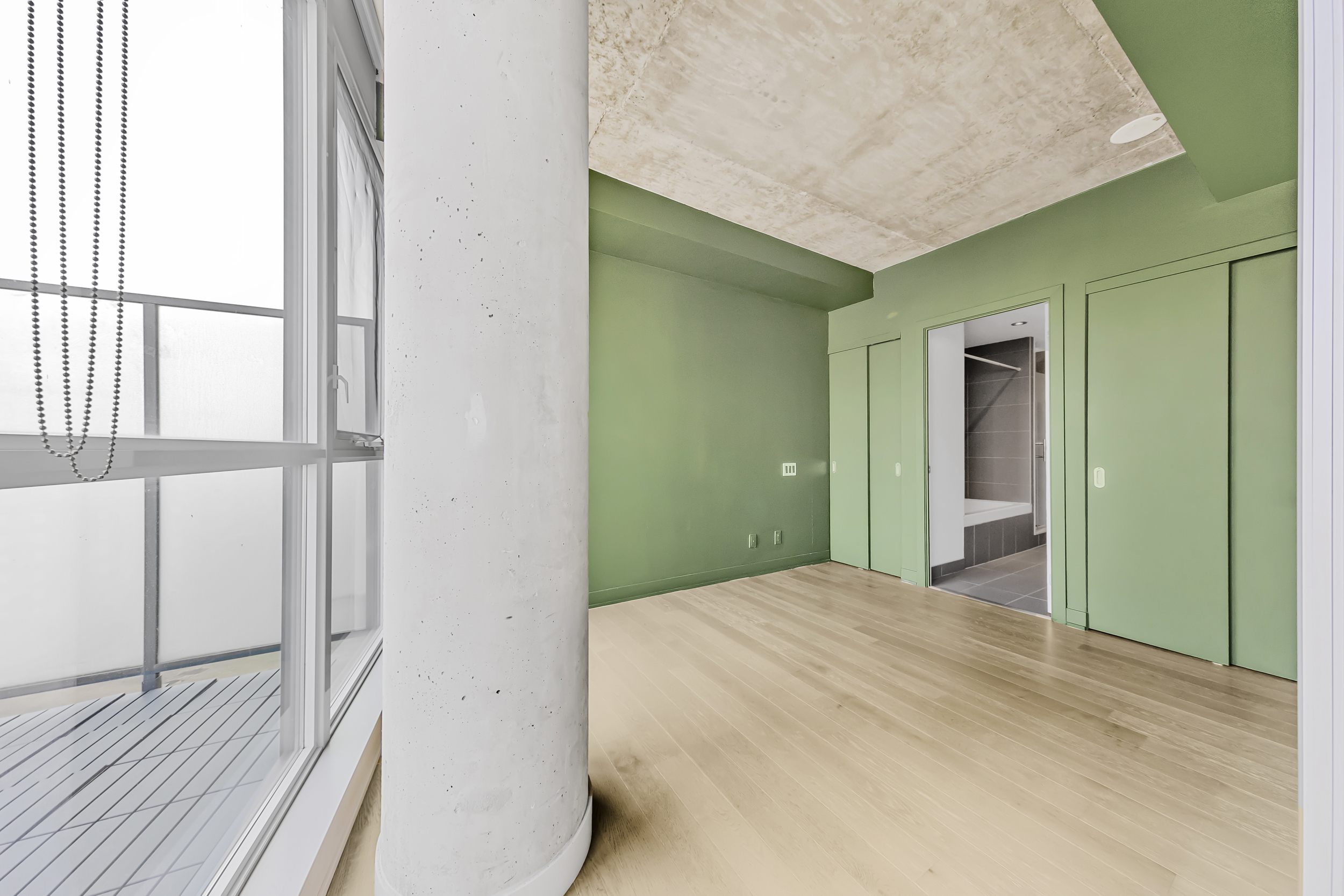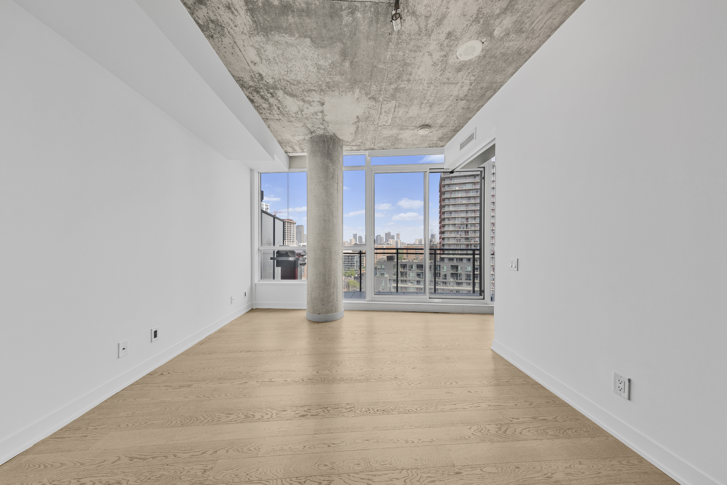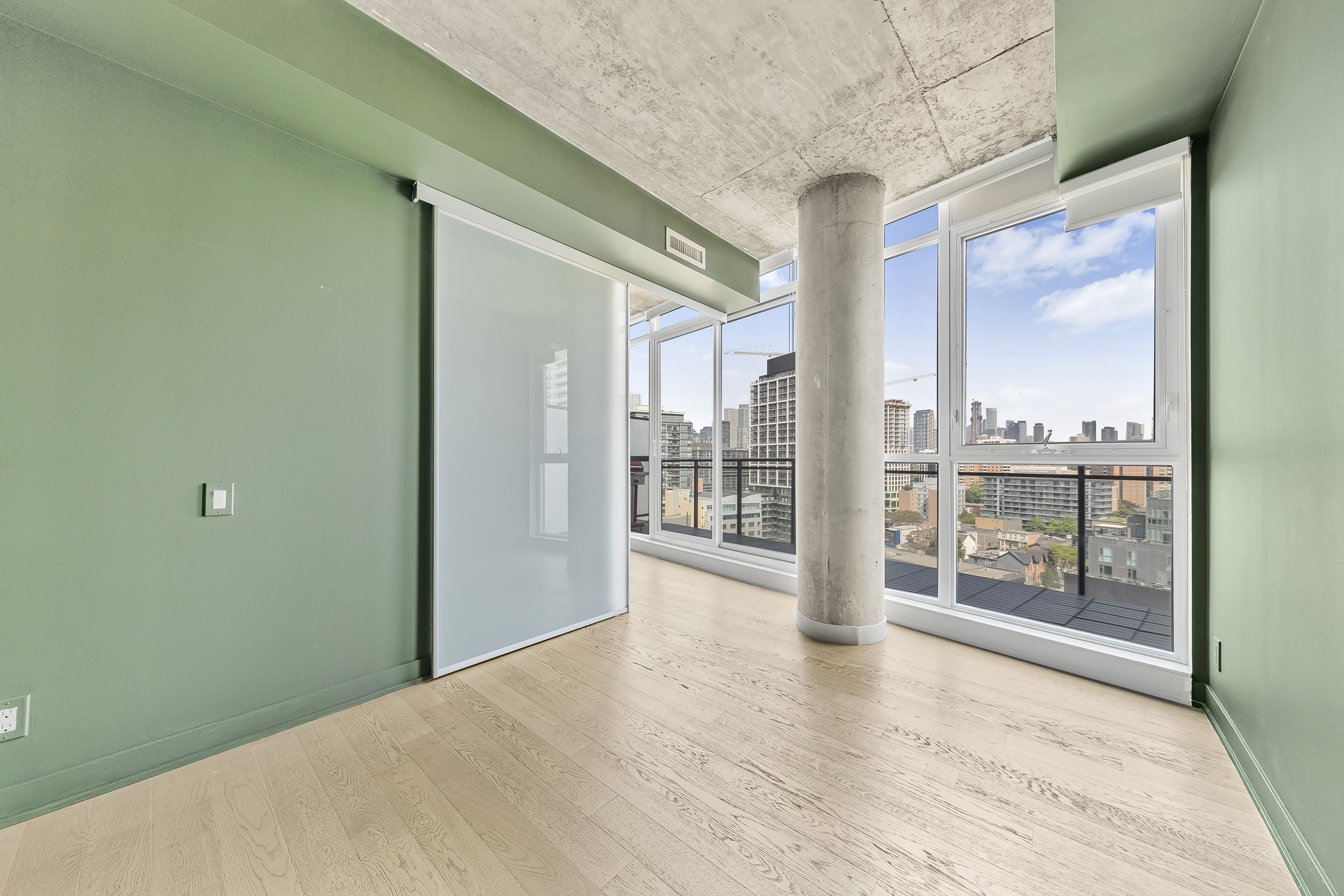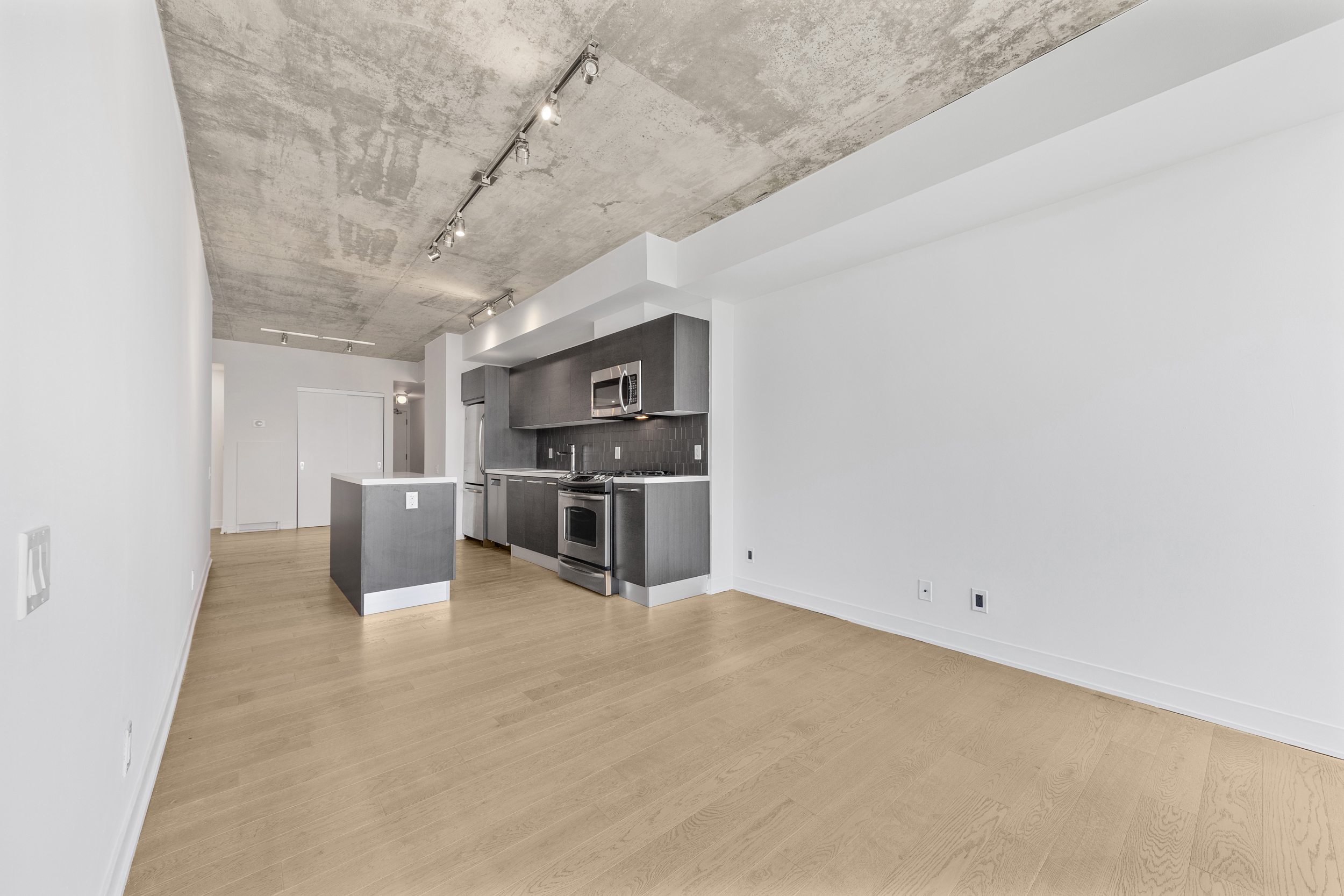 Sleek and stylish north-facing loft in one of the east ends most underrated gems – The King East, complete with parking and a locker. With 787 square feet of smartly designed space, this 1+1 bedroom brings industrial edge and functional flow, featuring exposed concrete ceilings, floor-to-ceiling windows, and a wide-open layout perfect for real life and entertaining. The open concept kitchen features full-sized stainless steel appliances including a gas stove, centre island, and ample cabinetry. The living area is spacious and bright with floor-to-ceilings windows and a walkout to your private 115 sq ft balcony with skyline views and a gas line for your BBQ. The spacious den is a perfect flex space – whether for dining, lounging, or your work-from-home private office. The bedroom features north views, two closets, and semi-ensuite access to a spa-like 5-piece bath with separate shower and deep tub/shower combo. You’ll find a parking space and locker among other serious building perks, including a concierge, stylish party room with kitchen, terrace, and BBQs, guest suites, and visitor parking. Steps to the King streetcar and surrounded by parks, cafes, and design shops, this address is about to level up with the incoming Ontario Line Corktown subway stop just across the street. Walk to the Distillery District, St. Lawrence Market, Corktown Commons, Cherry Beach, and Leslieville. Groceries, gyms, banks, restos, and coffee all nearby for your convenience.