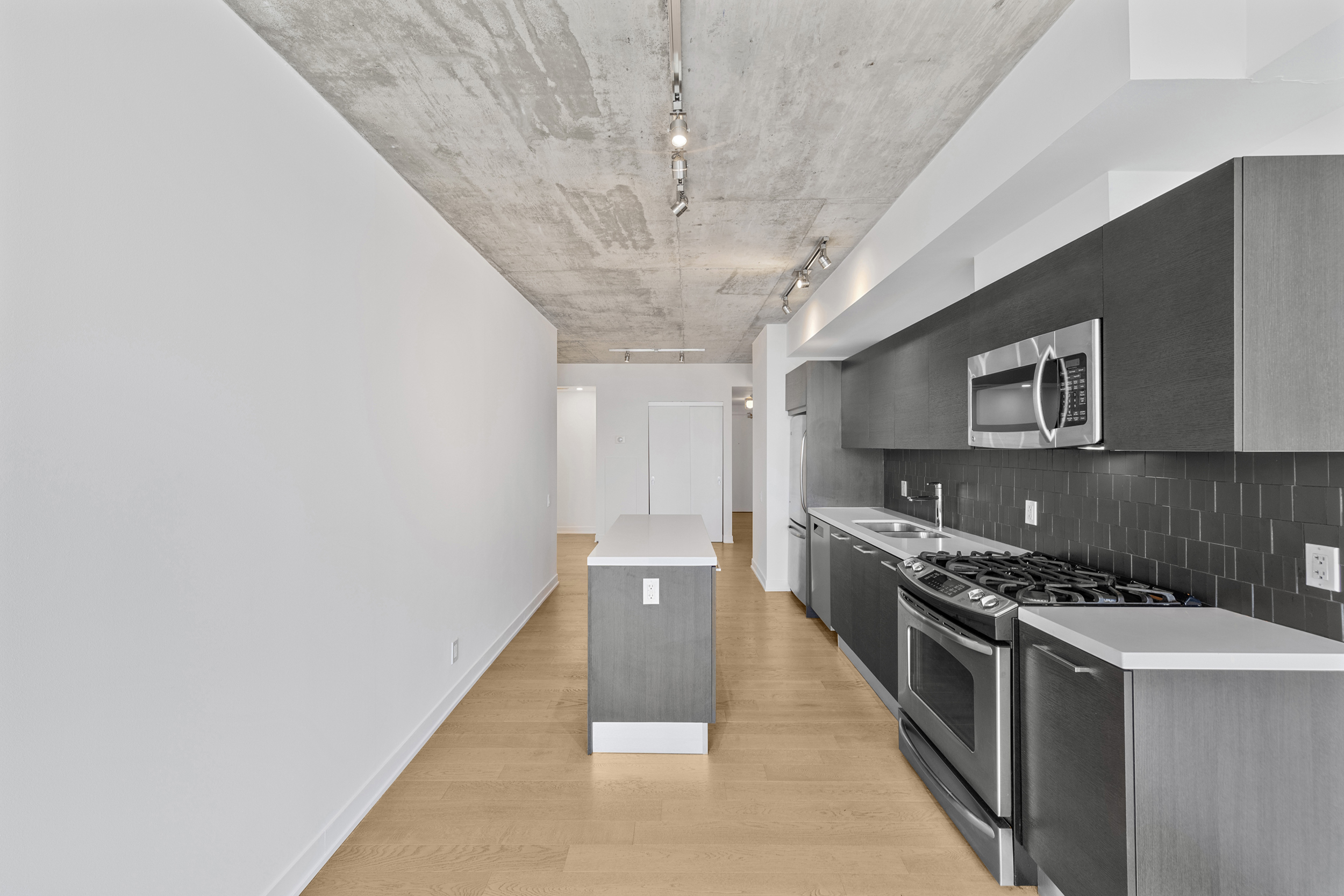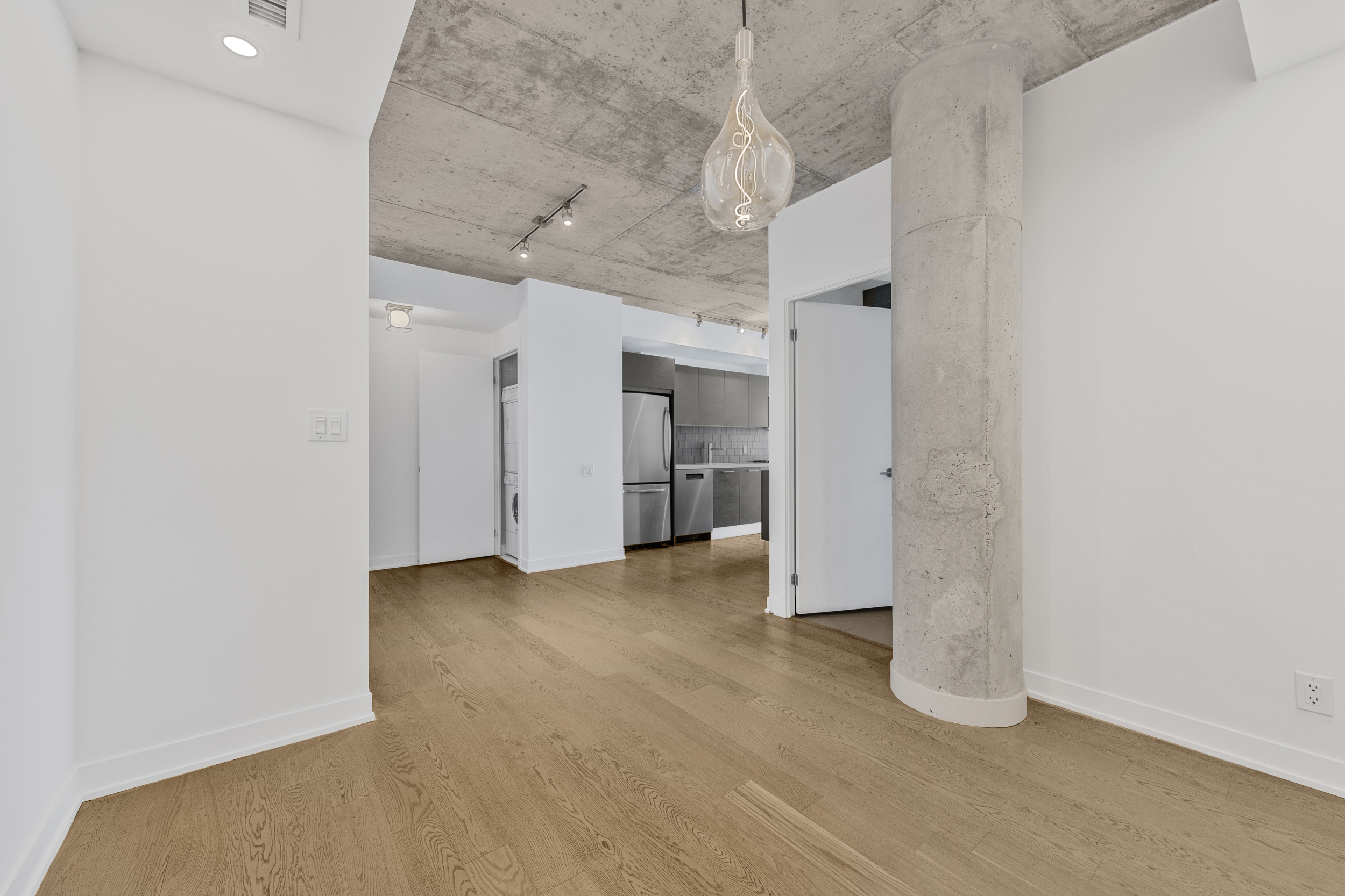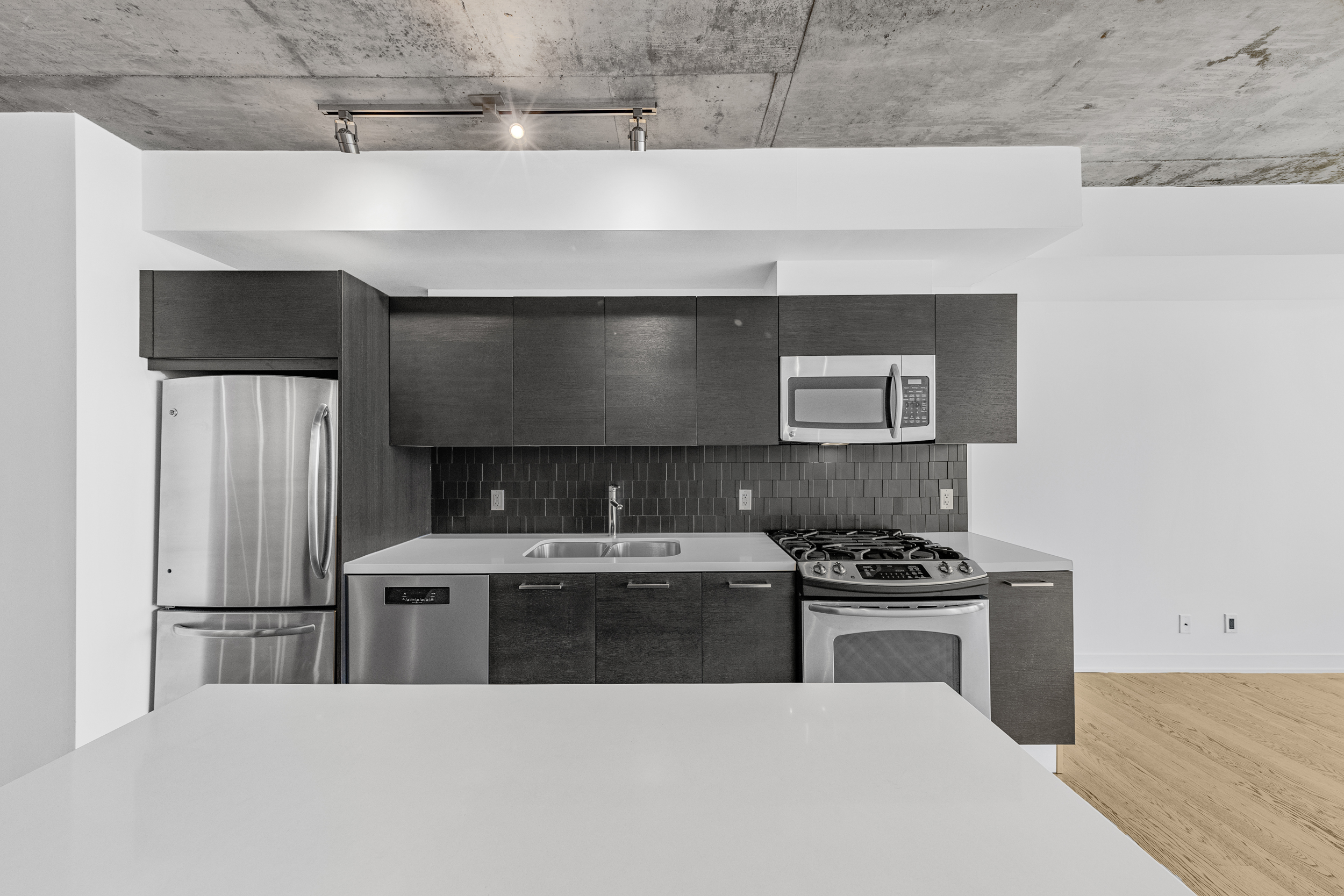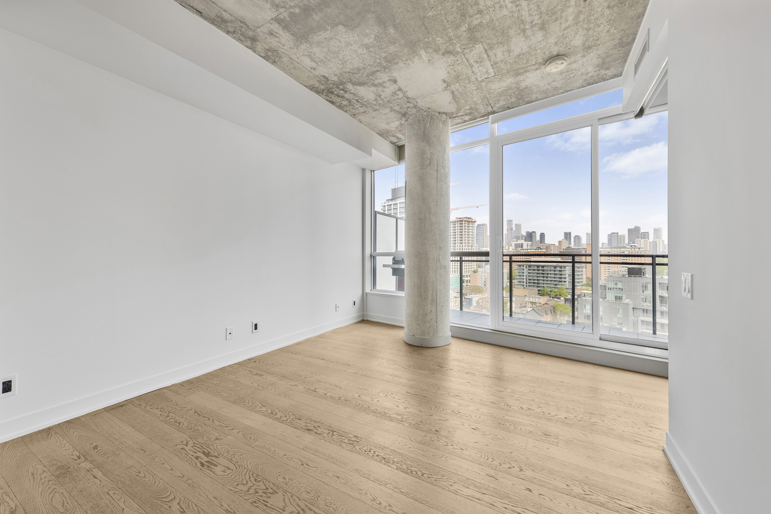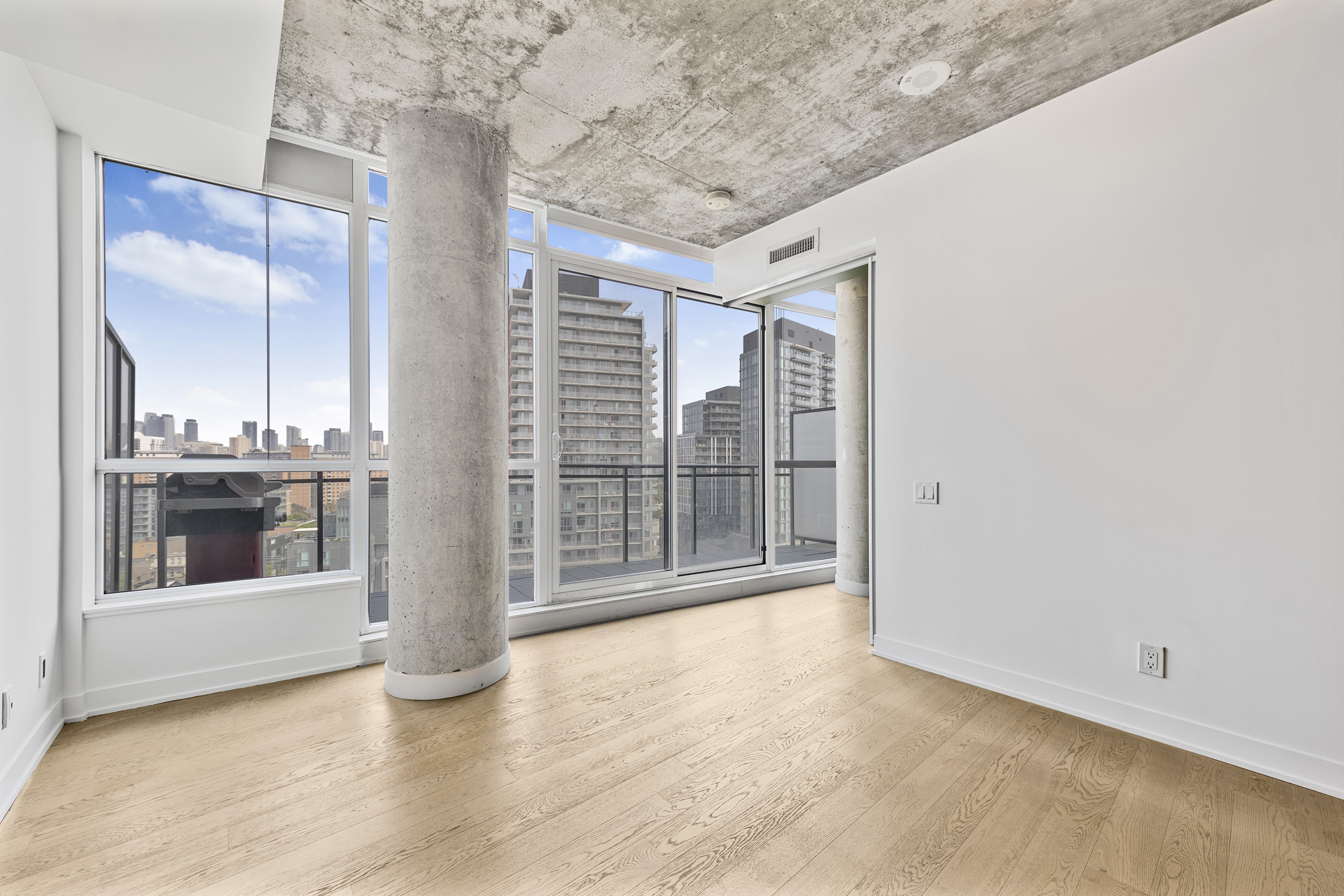 Sleek and stylish north-facing loft in one of the east ends most underrated gems – The King East, complete with parking and a locker. With 787 square feet of smartly designed space, this 1+1 bedroom brings industrial edge and functional flow, featuring exposed concrete ceilings, floor-to-ceiling windows, and a wide-open layout perfect for real life and entertaining. The open concept kitchen features full-sized stainless steel appliances including a gas stove, centre island, and ample cabinetry. The living area is spacious and bright with floor-to-ceilings windows and a walkout to your private 115 sq ft balcony with skyline views and a gas line for your BBQ. The spacious den is a perfect flex space – whether for dining, lounging, or your work-from-home private office. The bedroom features north views, two closets, and semi-ensuite access to a spa-like 5-piece bath with separate shower and deep tub/shower combo. You’ll find a parking space and locker among other serious building perks, including a concierge, stylish party room with kitchen, terrace, and BBQs, guest suites, and visitor parking. Steps to the King streetcar and surrounded by parks, cafes, and design shops, this address is about to level up with the incoming Ontario Line Corktown subway stop just across the street. Walk to the Distillery District, St. Lawrence Market, Corktown Commons, Cherry Beach, and Leslieville. Groceries, gyms, banks, restos, and coffee all nearby for your convenience.