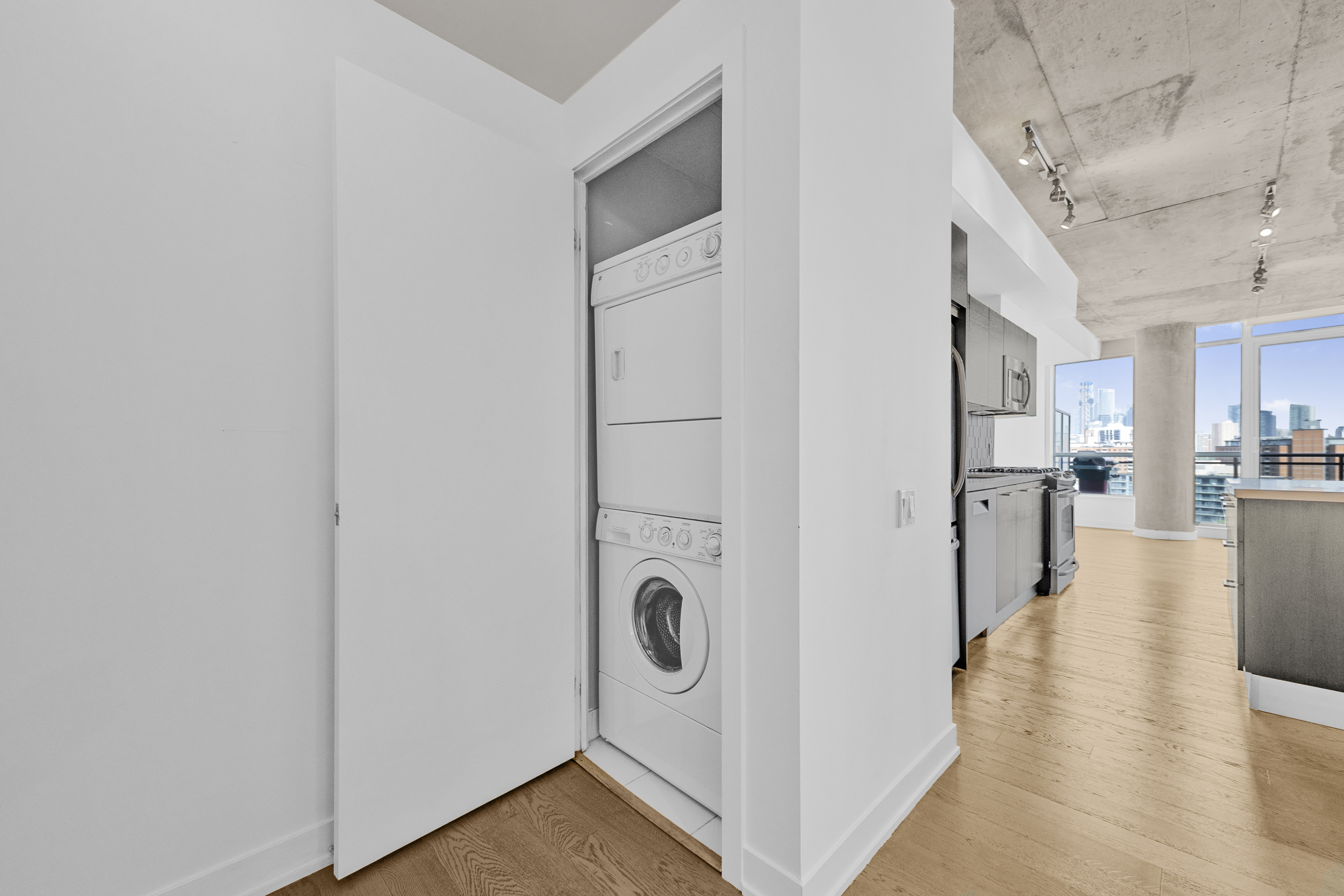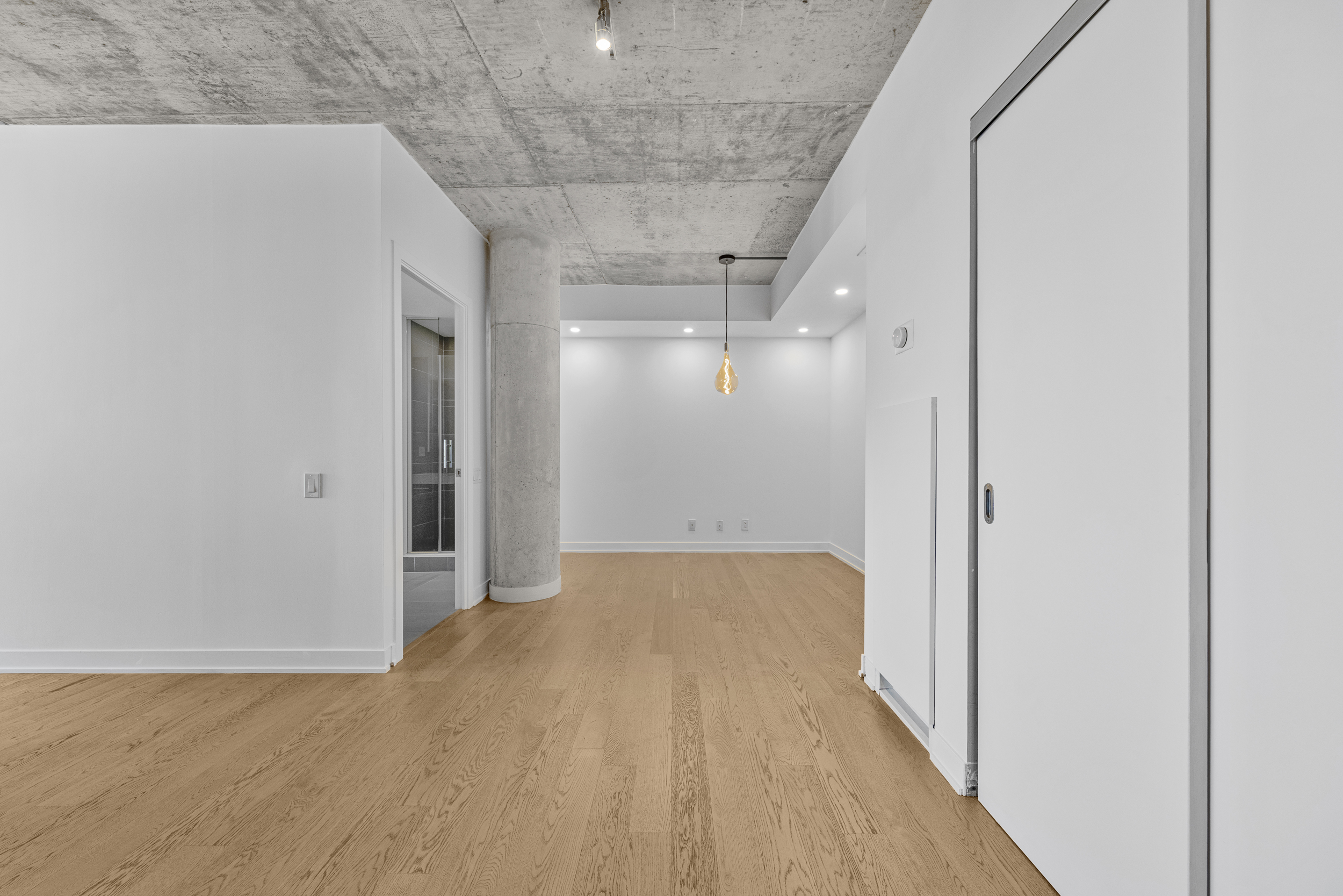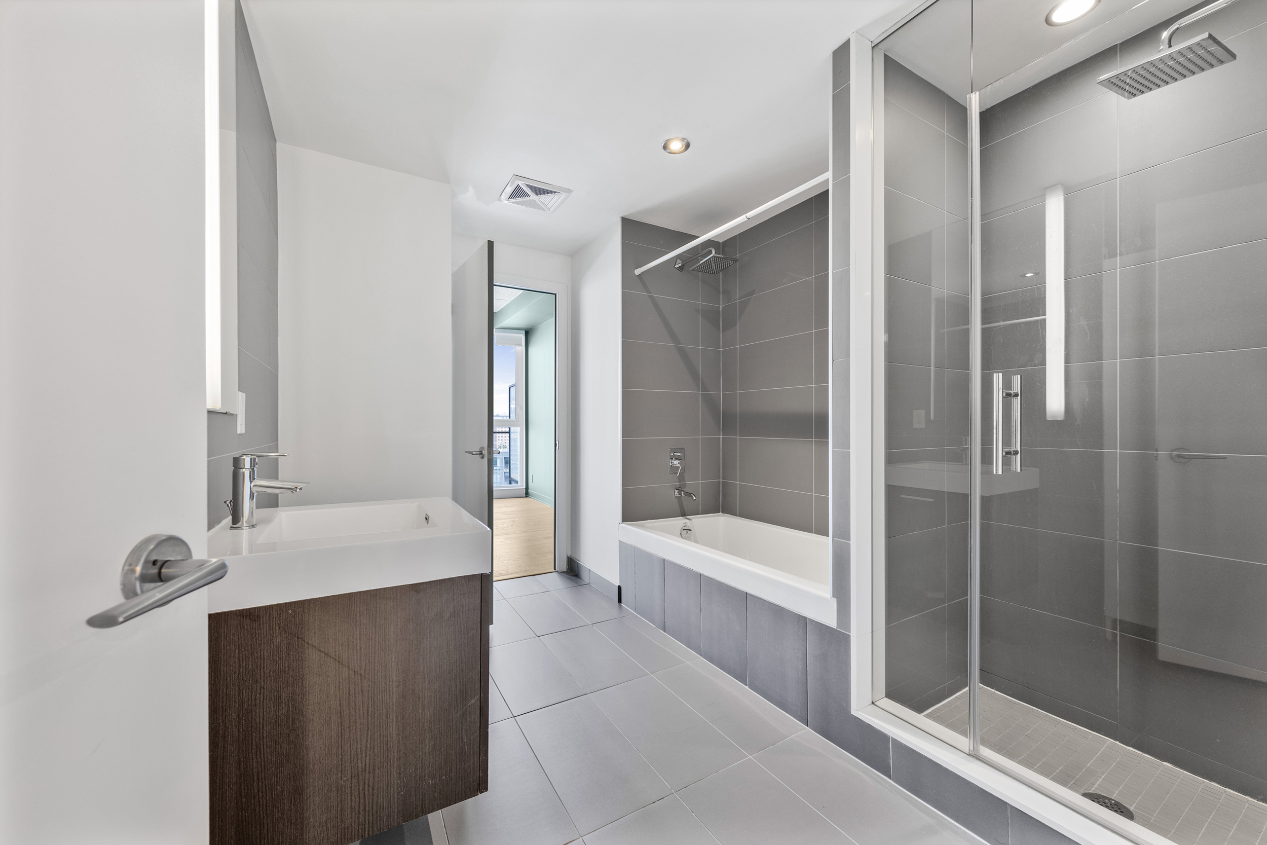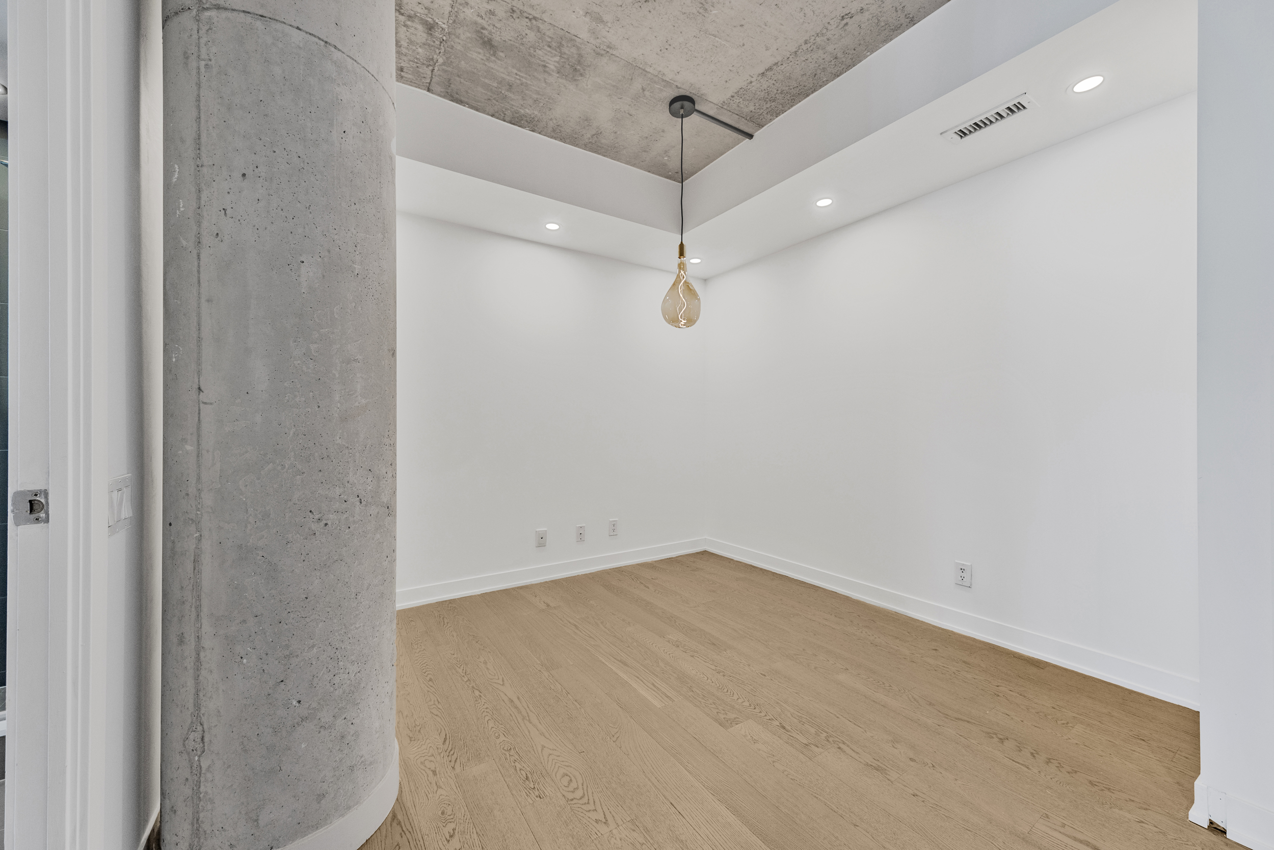 Sleek and stylish north-facing loft in one of the east ends most underrated gems – The King East, complete with parking and a locker. With 787 square feet of smartly designed space, this 1+1 bedroom brings industrial edge and functional flow, featuring exposed concrete ceilings, floor-to-ceiling windows, and a wide-open layout perfect for real life and entertaining. The open concept kitchen features full-sized stainless steel appliances including a gas stove, centre island, and ample cabinetry. The living area is spacious and bright with floor-to-ceilings windows and a walkout to your private 115 sq ft balcony with skyline views and a gas line for your BBQ. The spacious den is a perfect flex space – whether for dining, lounging, or your work-from-home private office. The bedroom features north views, two closets, and semi-ensuite access to a spa-like 5-piece bath with separate shower and deep tub/shower combo. You’ll find a parking space and locker among other serious building perks, including a concierge, stylish party room with kitchen, terrace, and BBQs, guest suites, and visitor parking. Steps to the King streetcar and surrounded by parks, cafes, and design shops, this address is about to level up with the incoming Ontario Line Corktown subway stop just across the street. Walk to the Distillery District, St. Lawrence Market, Corktown Commons, Cherry Beach, and Leslieville. Groceries, gyms, banks, restos, and coffee all nearby for your convenience.