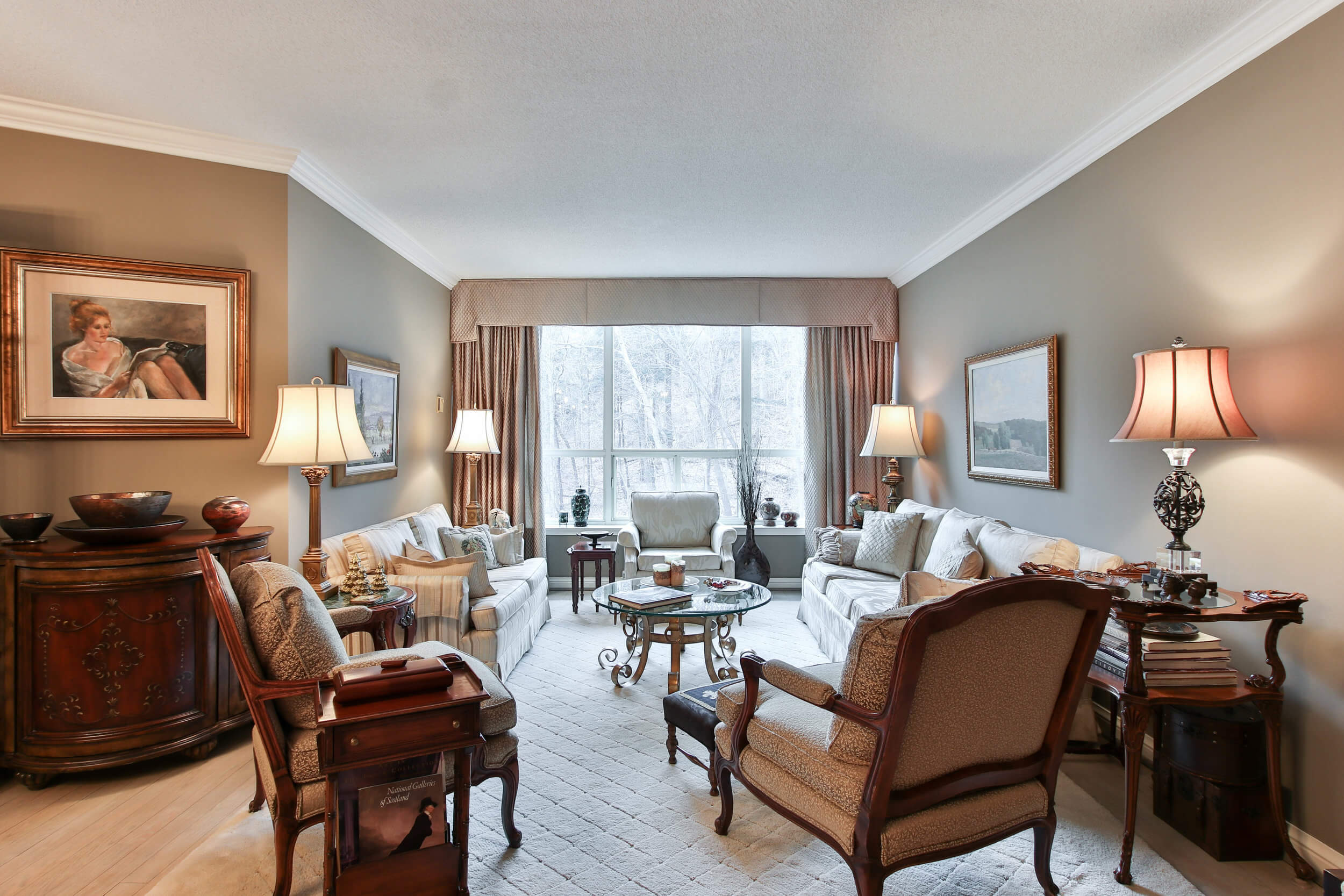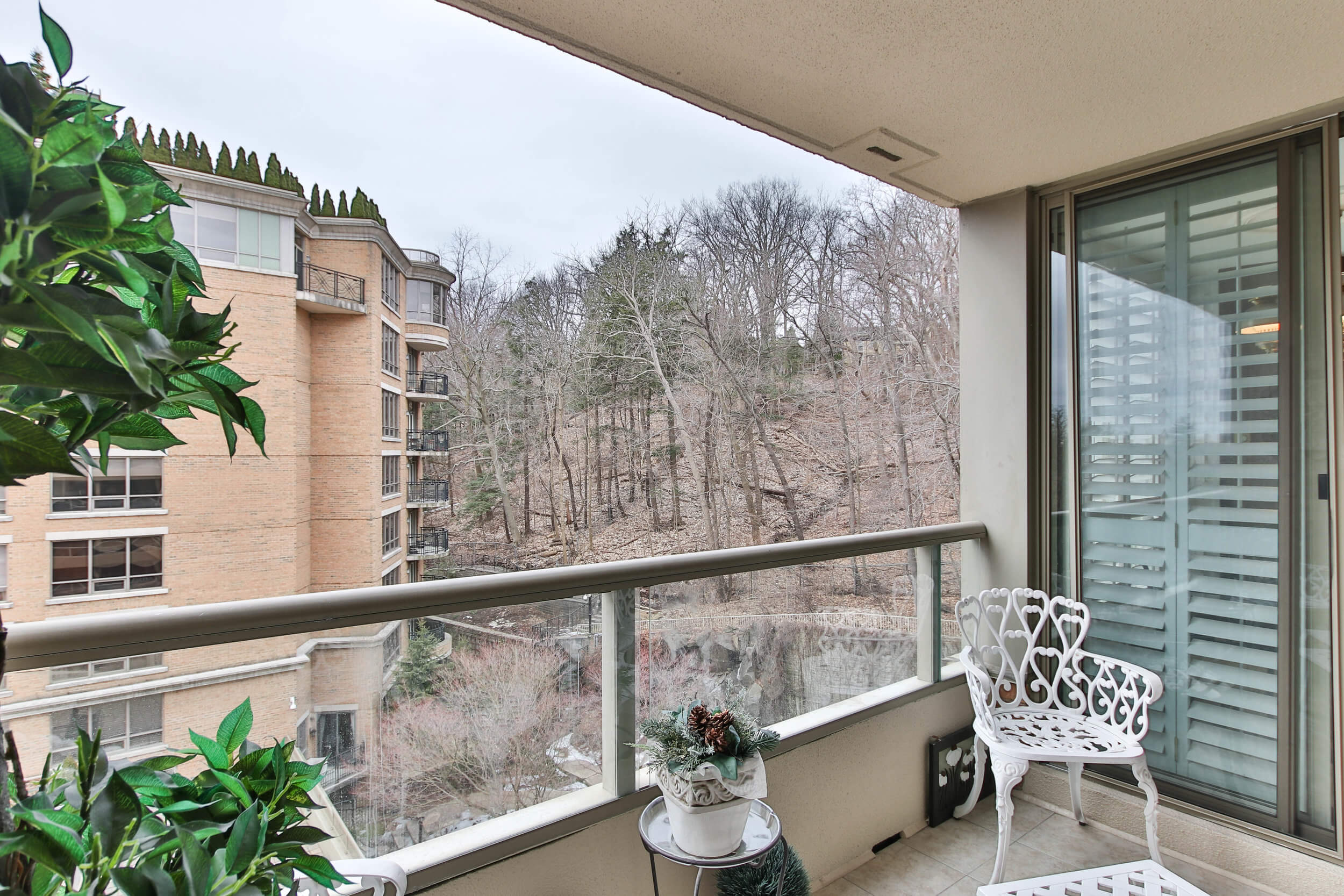 Take it all in at Governor’s Hill built by Tridel! This exquisitely appointed 1500 sqft 2 bed 2 bath unit faces the ravine-like hillside and beautiful gardens. Second bedroom currently used as family room with gas fireplace. Filled with natural light throughout. Relax in your master wing with wall to wall windows, large 5pc en-suite, 2 walk in closets & b/i shelving! Use governor’s extensive amenities: grotto-like indoor pool, library, gym, party room and more!