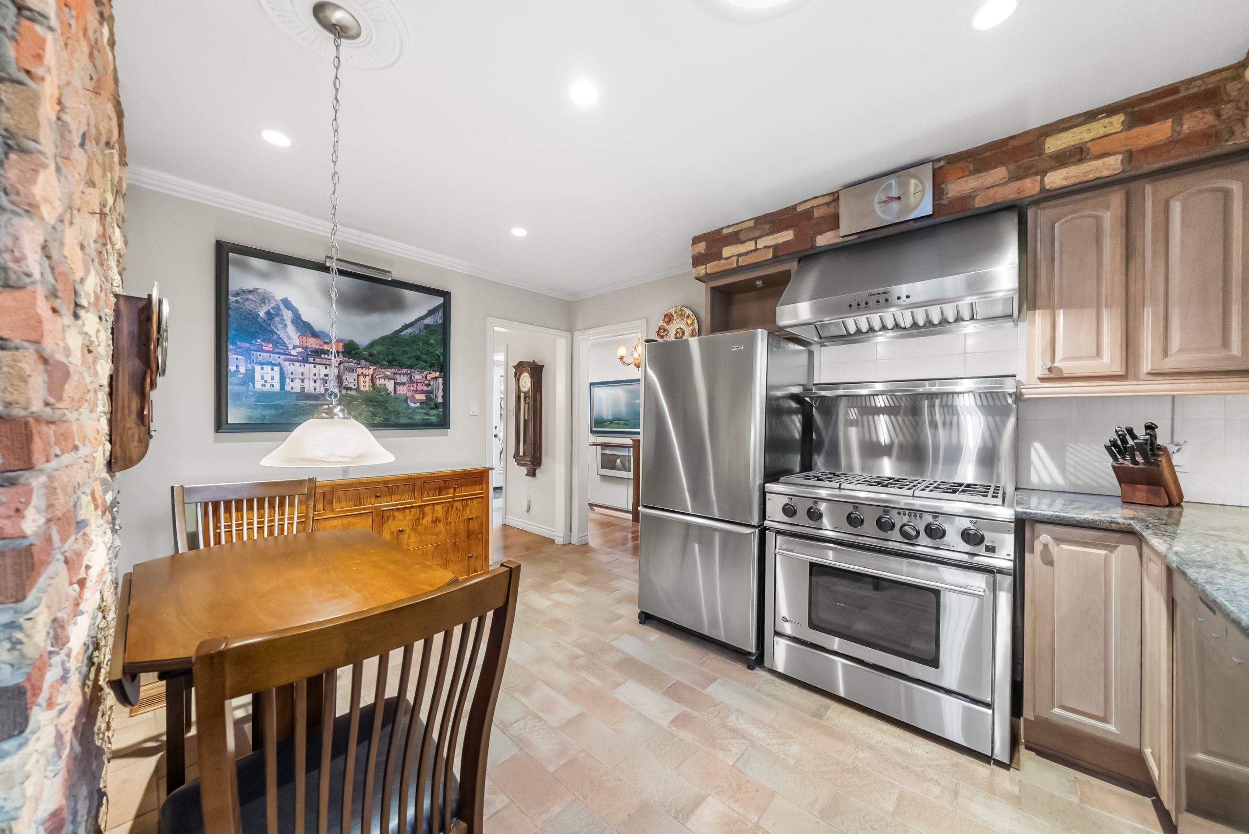 Inside, find gleaming hardwood floors, crown moulding, and abundant natural light streaming through a large bay window overlooking the lush professionally landscaped front garden. The open-concept living and dining area offers a warm, welcoming space for gathering with loved ones or quiet evenings at home. The eat-in kitchen features granite counters, s/s appliances including a 6-burner gas stove, undercabinet lighting, and a sunny breakfast nook.