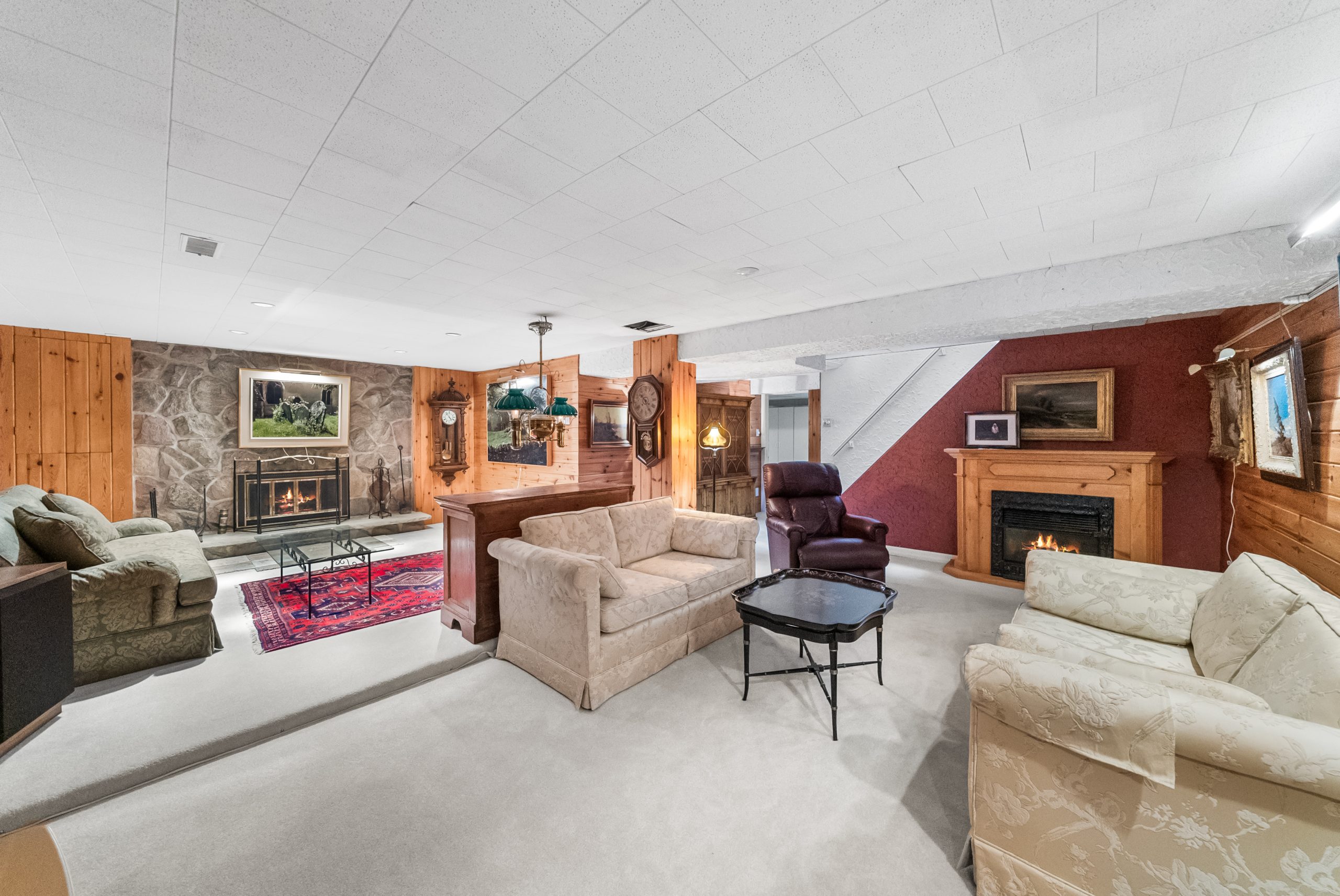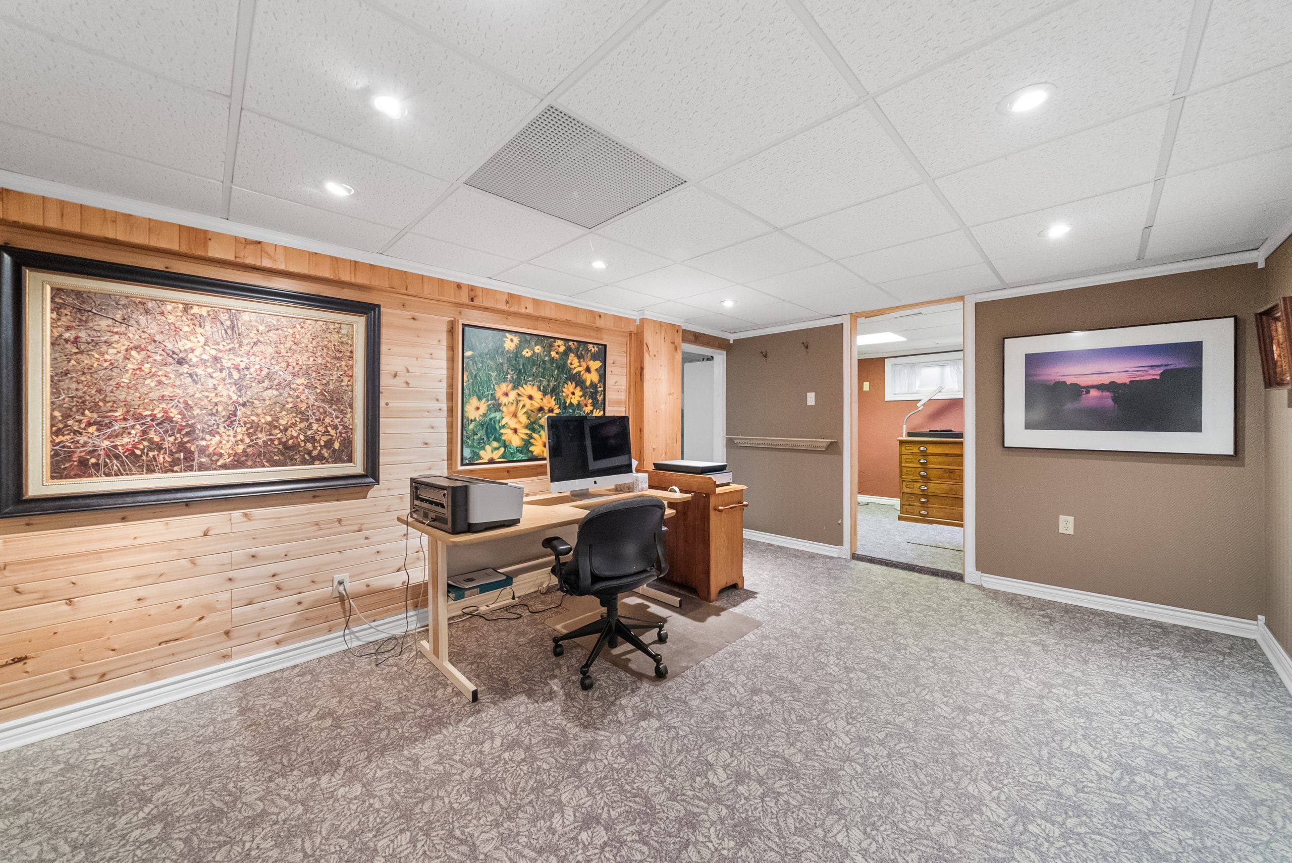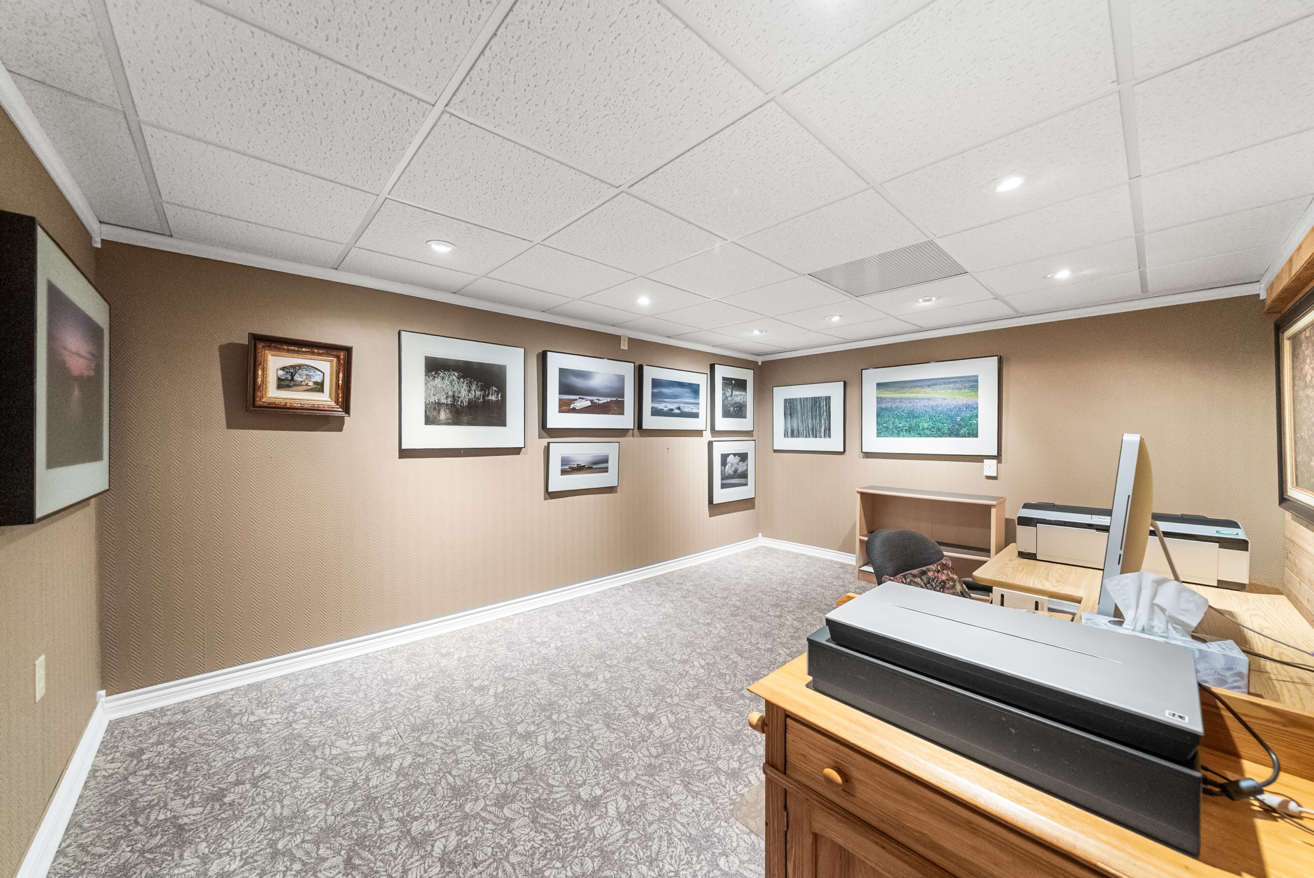 The lower family and sitting rooms boast a striking stone fireplace, ideal for movie nights or family gatherings. The separate, oversized rec room includes built-in closets, a cedar-lined closet with organizers, and a workbench for your next home project. Two separate office spaces offer flexibility for remote work, a playroom, or hobbies.