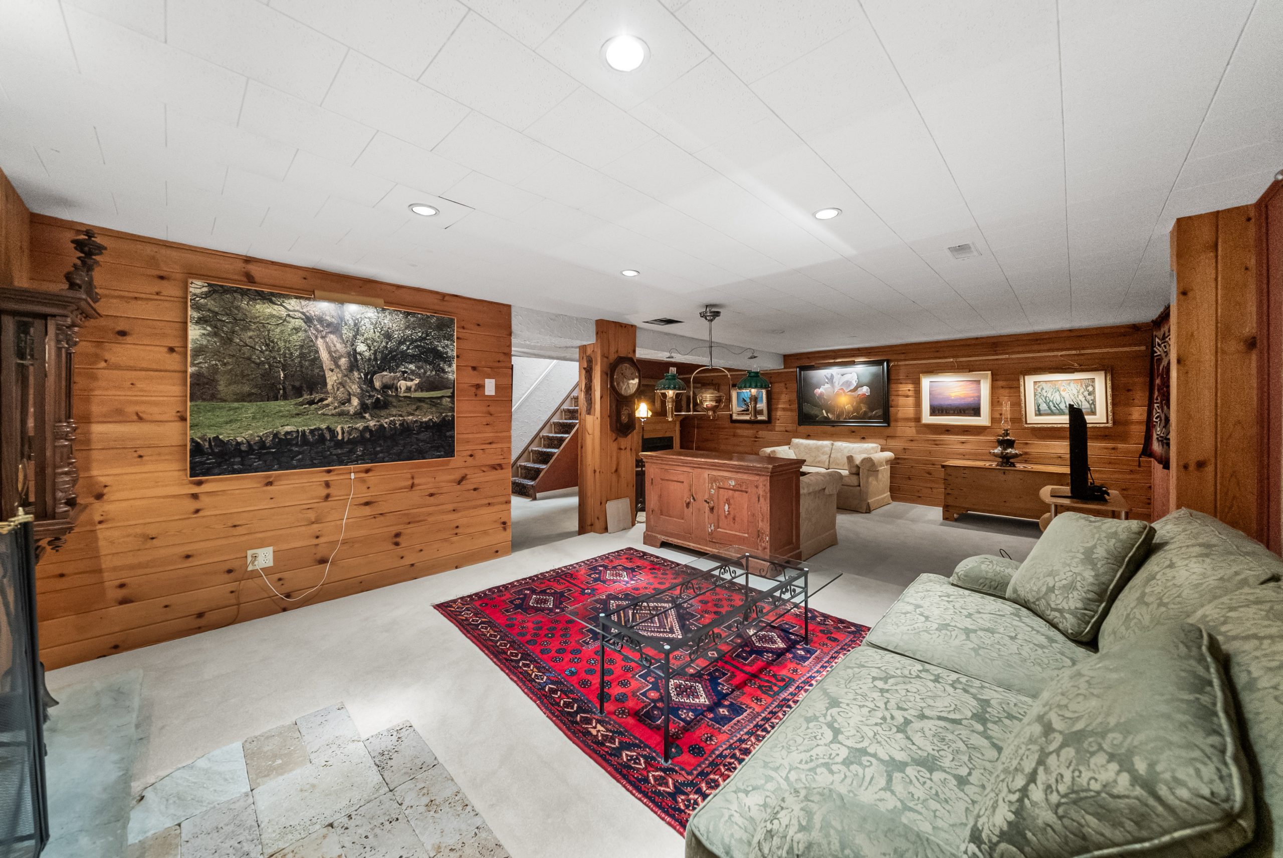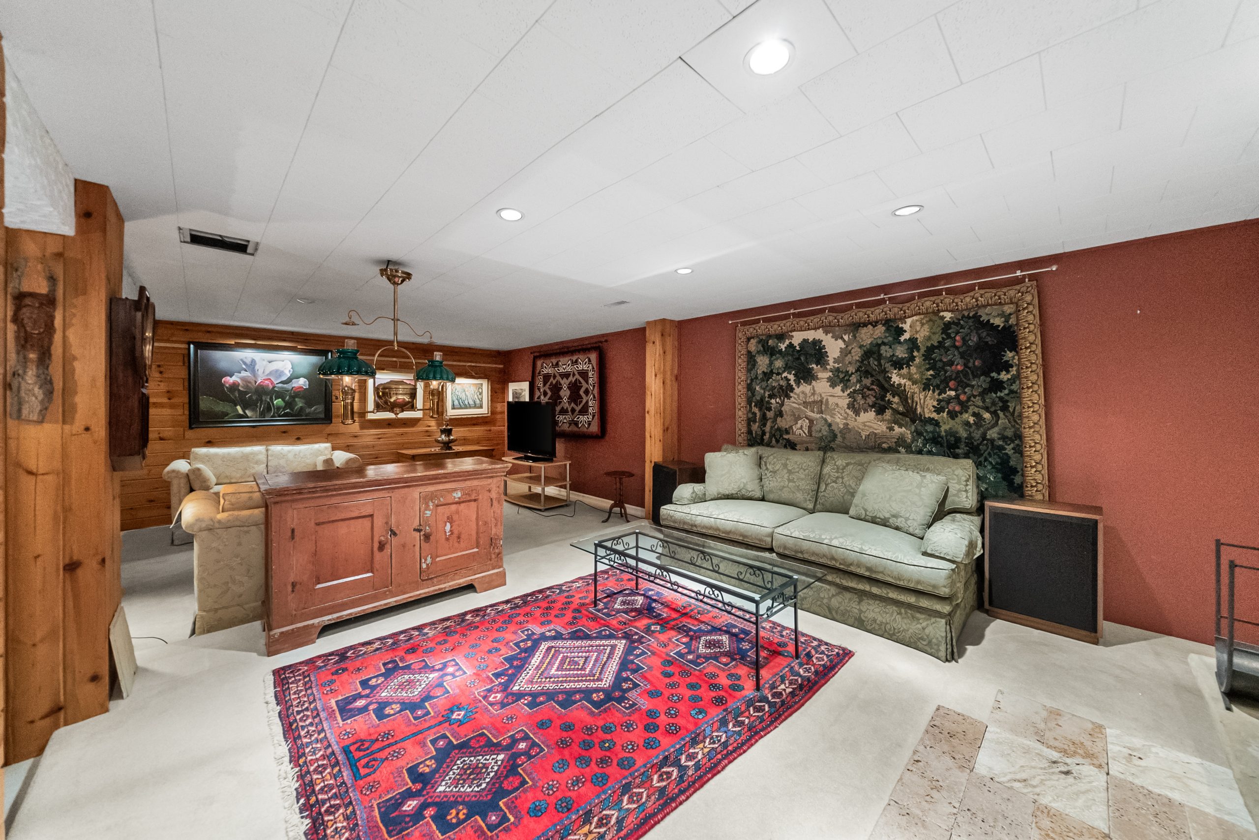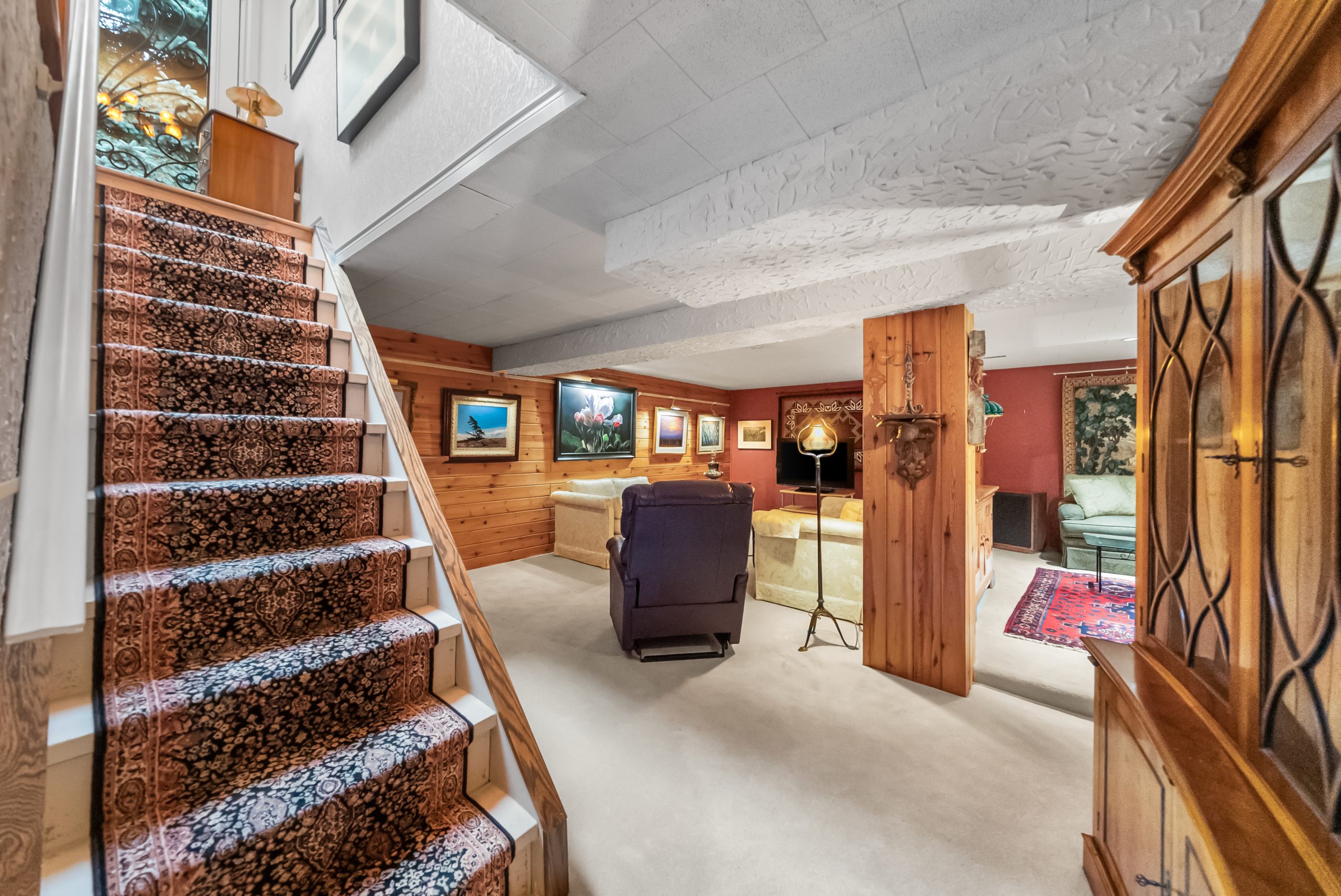 The lower family and sitting rooms boast a striking stone fireplace, ideal for movie nights or family gatherings. The separate, oversized rec room includes built-in closets, a cedar-lined closet with organizers, and a workbench for your next home project. Two separate office spaces offer flexibility for remote work, a playroom, or hobbies.