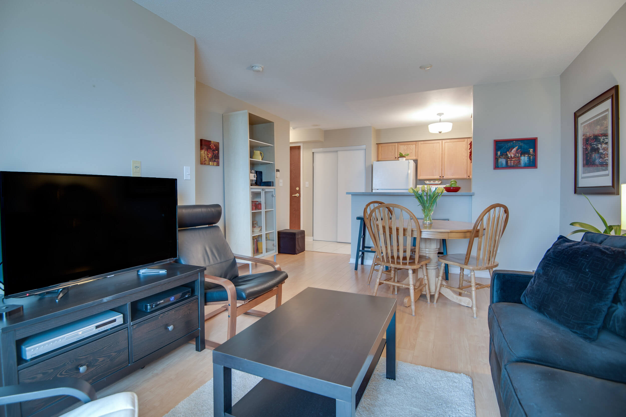 Bright corner suite at Gates of Bayview Glen. Excellent open concept floor plan of 615 sq ft. spacious master bedroom with wall-to-wall closet. Newer laminate wood floors. Balcony, parking and locker. Ultra convenient location, close to movie theatre, community centre, shops, restaurants VIVA and GO transit, Hwys 7 and 407. Fantastic facilities – lap pool, gym, rec room, visitor parking. All utilities and cable included in condo fee.
