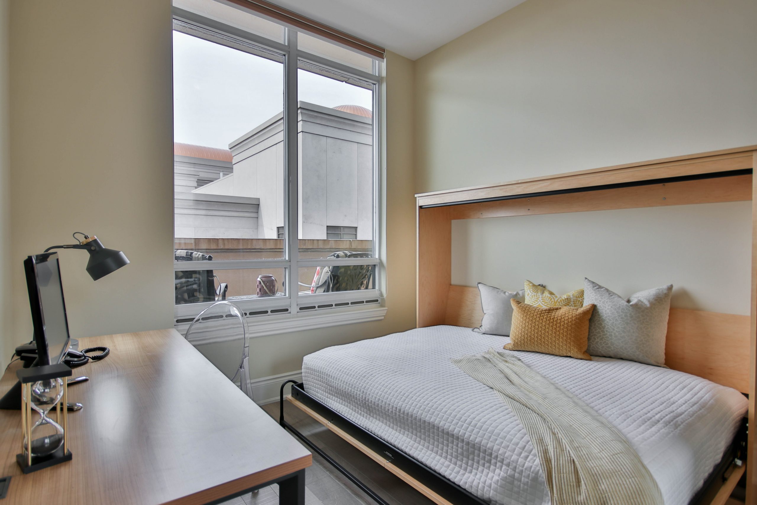 This penthouse is spacious & bright featuring 2 bedrooms and 2 bathrooms, with large ceiling-height windows, gleaming wood floors, & 10ft ceilings throughout.