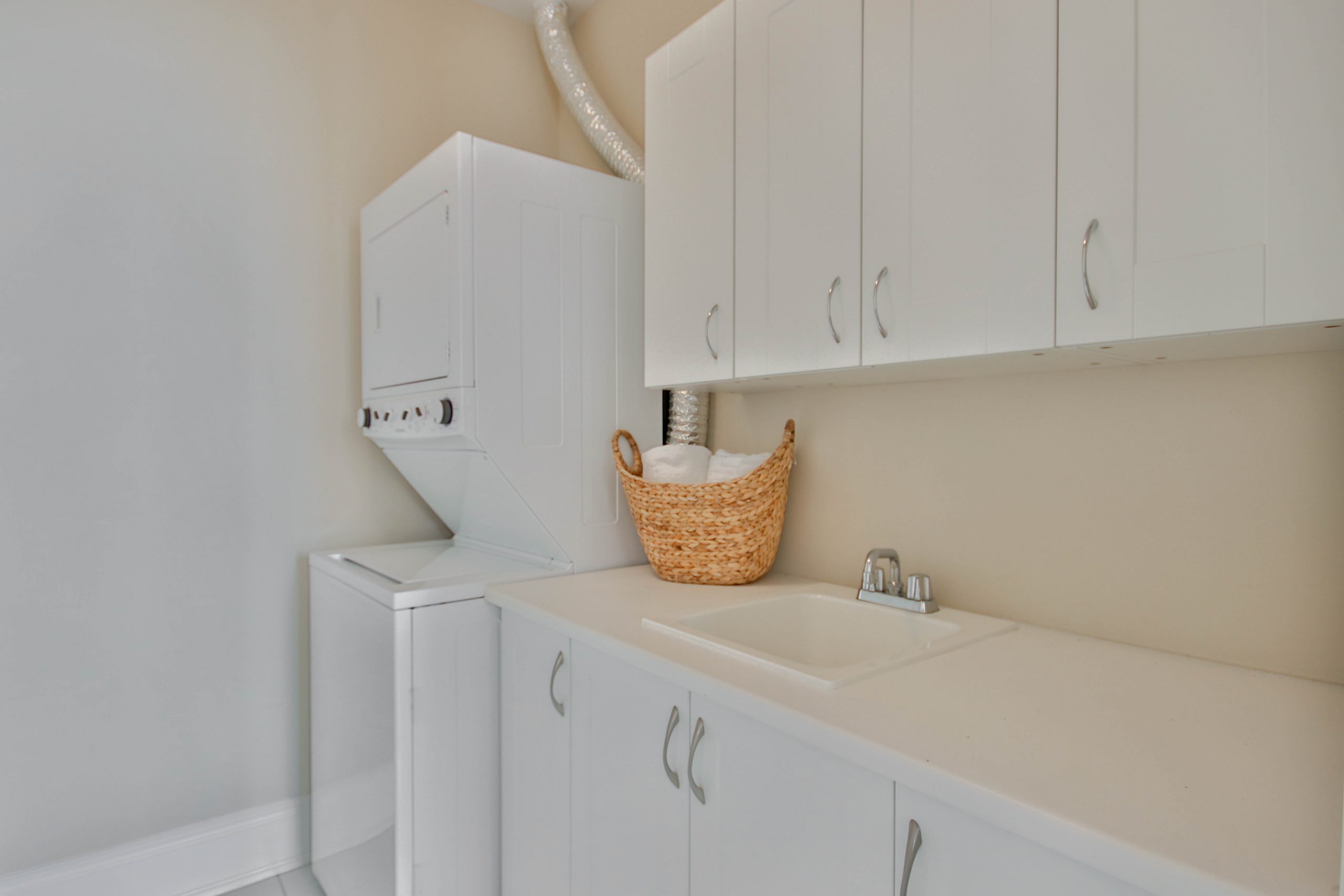 Separate in-suite laundry room includes washer/dryer combo, laundry sink, plus storage space.